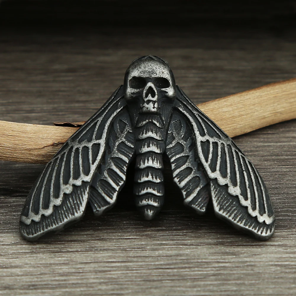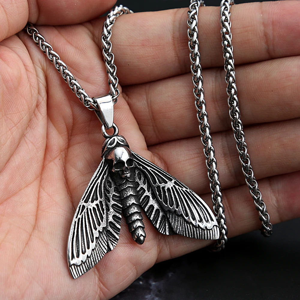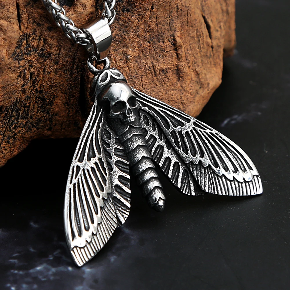 Collar con colgante vintage de calavera, mariposa y polilla para hombre, de acero inoxidable, estilo punk, con buen detalle, amuleto animal, joyería, regalo.