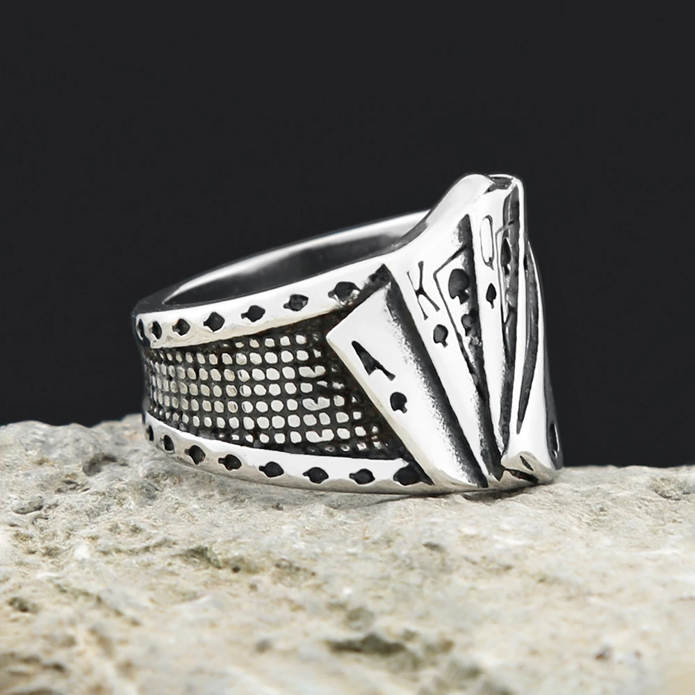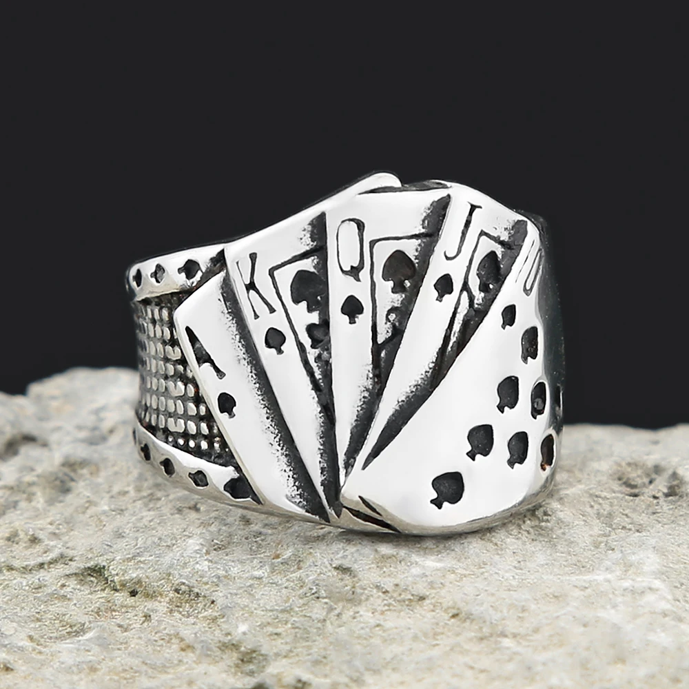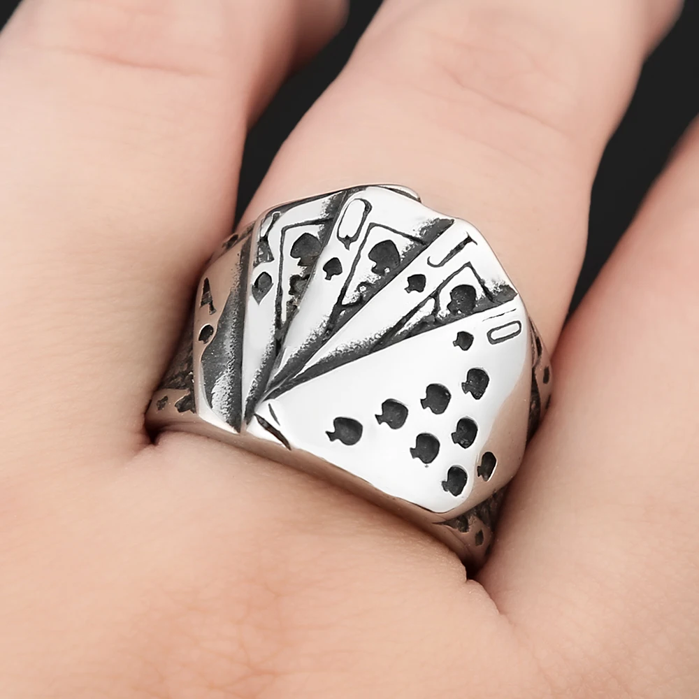 Anillos de póker de la suerte de acero inoxidable vintage para hombres y mujeres, estilo hip hop, estilo motero, con diseño de naipes, accesorios de joyería para fiestas.