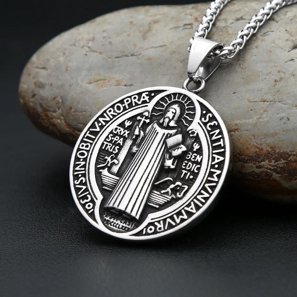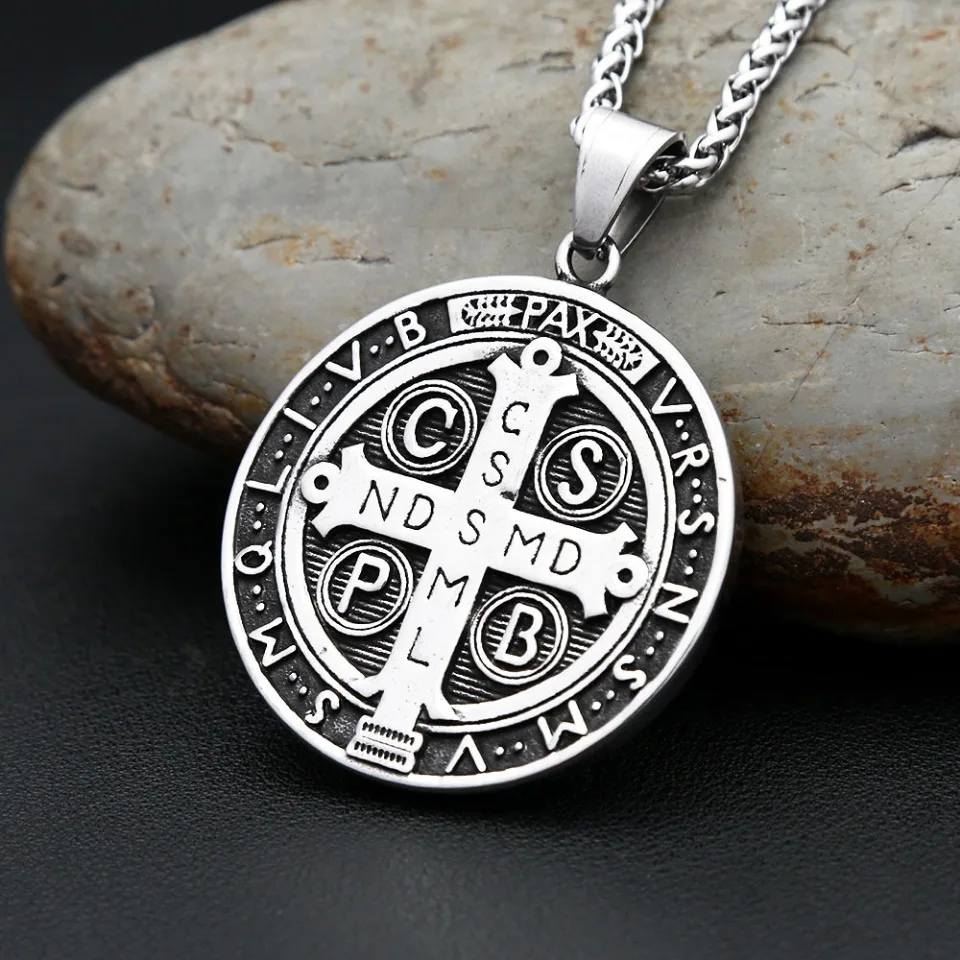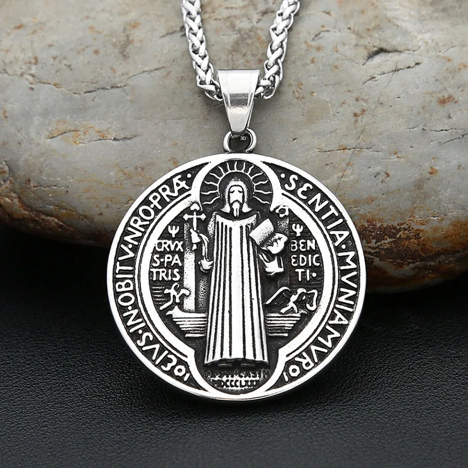 Collar vintage de acero inoxidable 316L con colgante de exorcismo de San Benito para hombre, amuleto católico de moda, joyería, regalos, envío directo