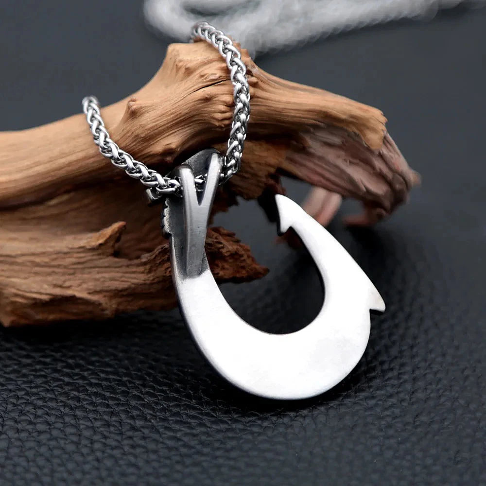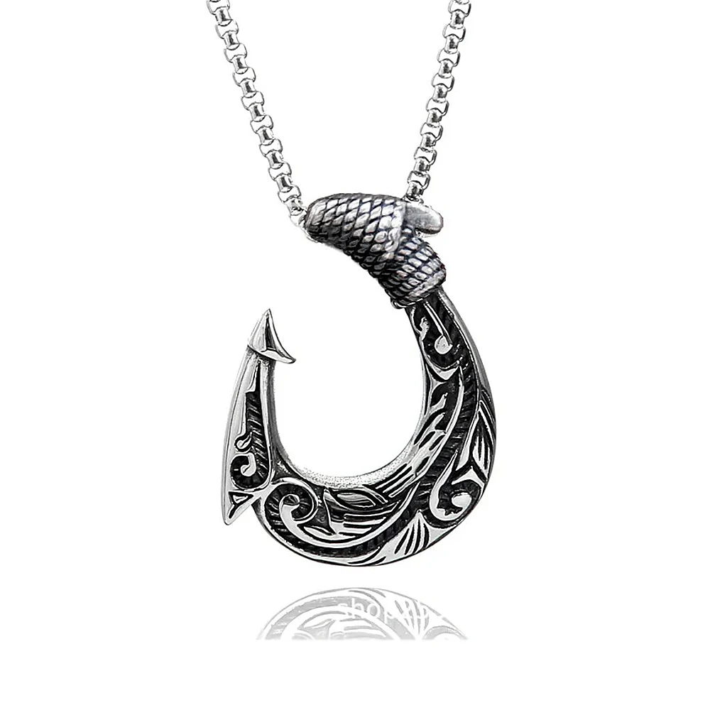 Collar nórdico vintage para hombre, de acero inoxidable, con diseño celta, colgante de anzuelo de pescado, accesorios de joyería nórdica punk hip hop