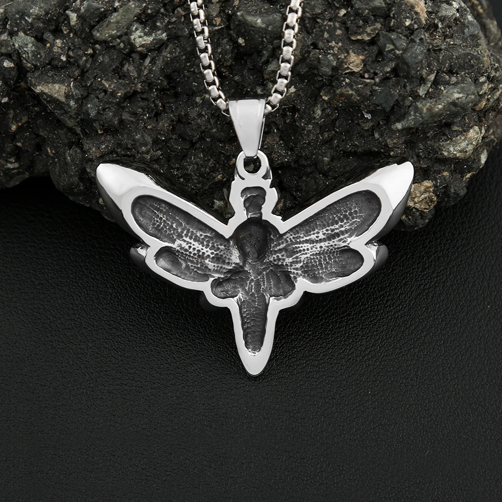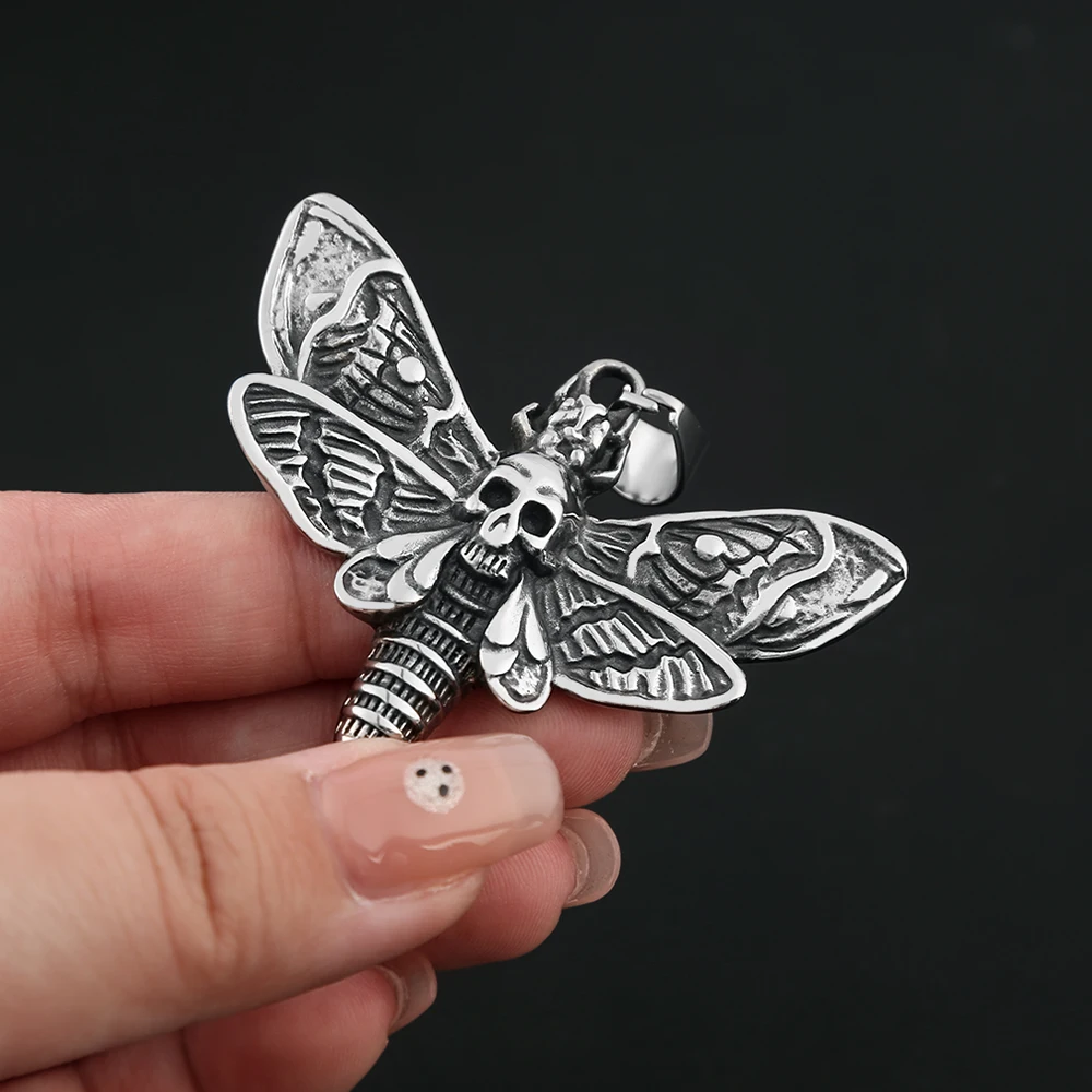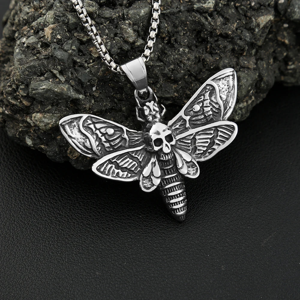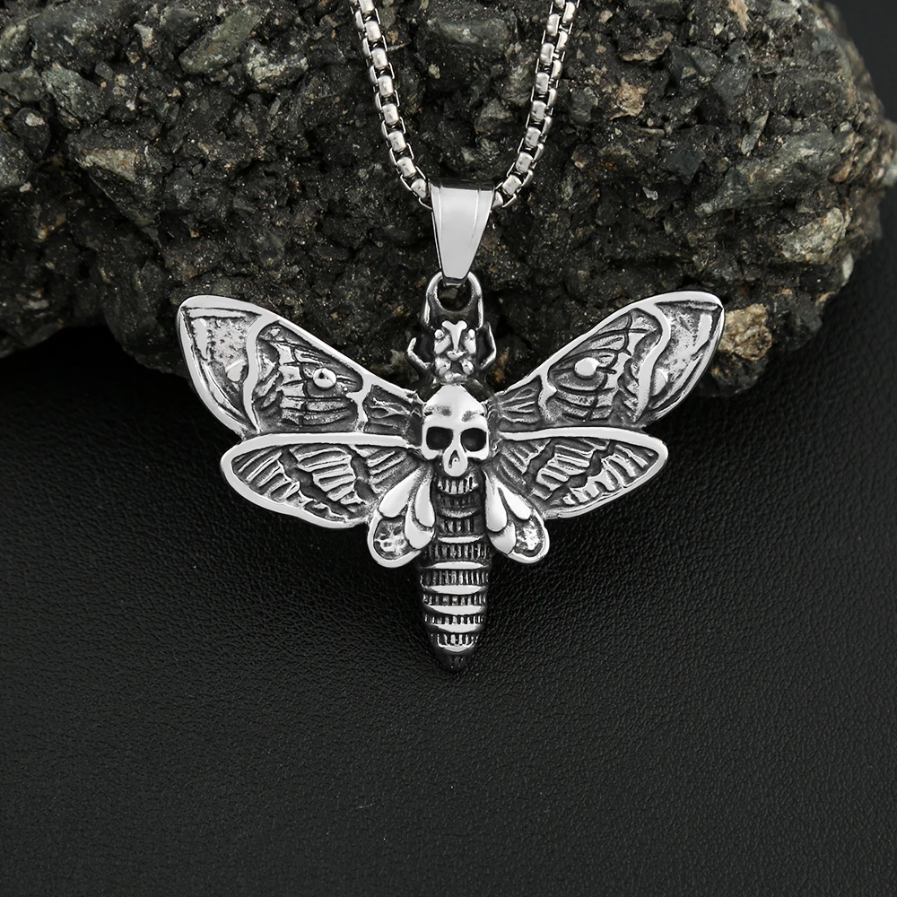 Collar vintage de acero inoxidable con colgante de calavera y polilla, estilo punk, estilo motero, con calavera y mariposa, para hombre, joyería de fiesta, regalo.