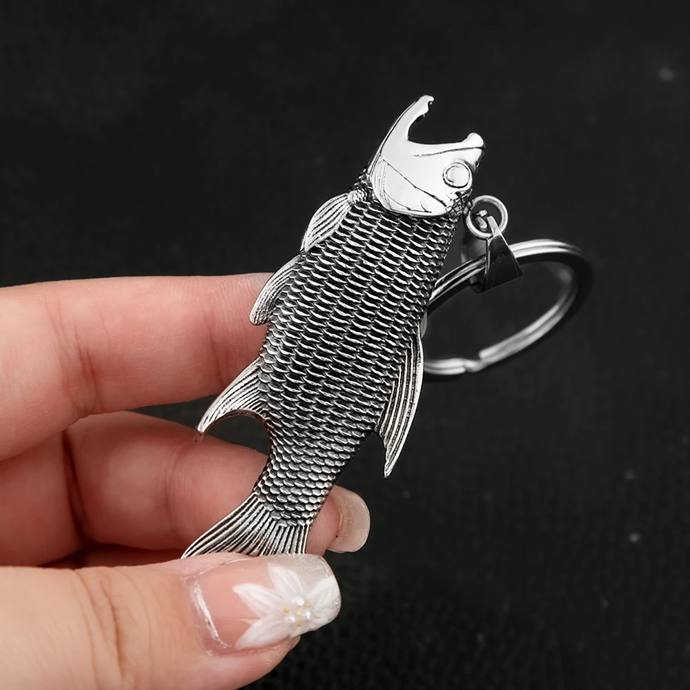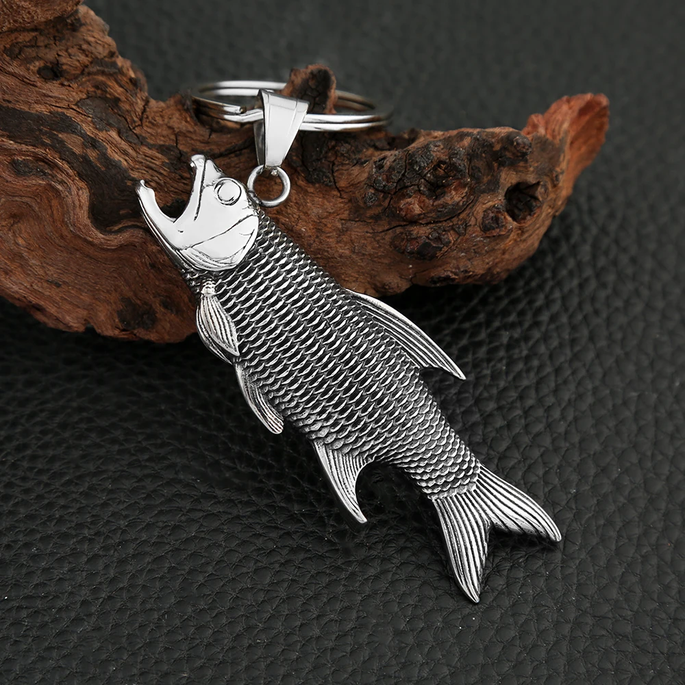 Llavero de pez punk de moda, de acero inoxidable, color plateado, con cierre de metal antiguo, accesorios para llaves de coche, joyería con dijes al por mayor